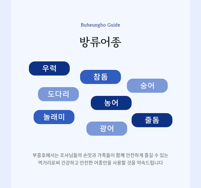 입어식(성인) ,000 입어식(초등) ,000 바다좌대(성인) ,000 바다좌대(초등) ,000 ※회손질비 ,000(팀당) 당진 도비도 좌대낚시 부흥호좌대 홈페이지에서 조과를 볼수 있어요. 날짜별로 조항을 살펴볼수